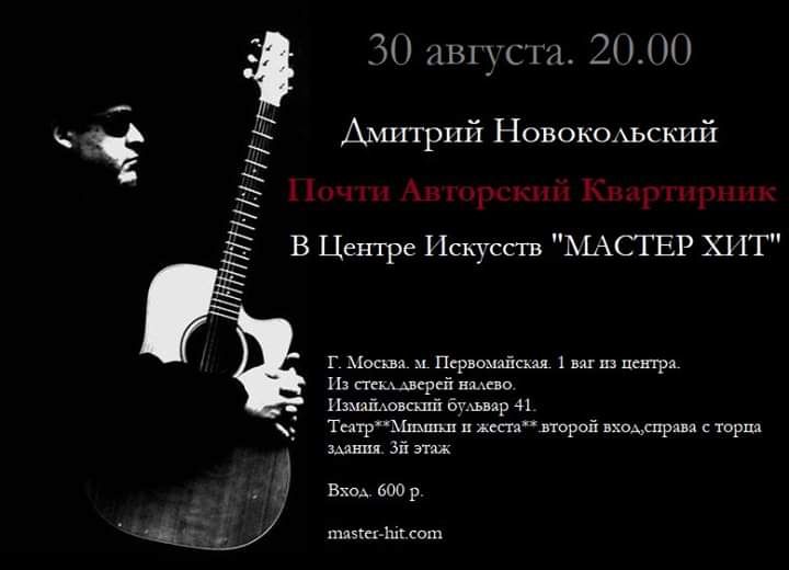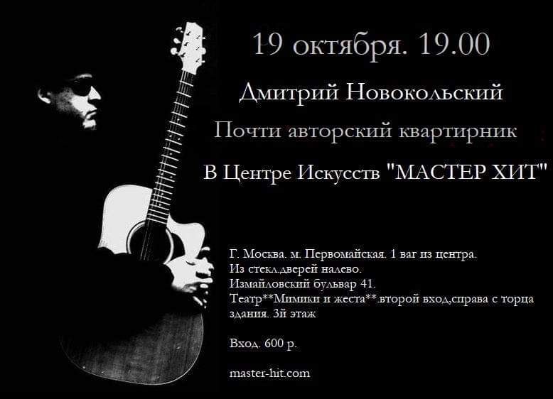 Друзья, снова приглашаем на программу Дмитрия Новокольского в Центр искусств "Мастер-Хит" 19.10.2019 в 19:00.