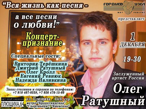 01.12.2016 в 19-30 состоится концерт-признание "Вся жизнь как песня, а все песни о любви!" в арт проекте "Гордиев узел".