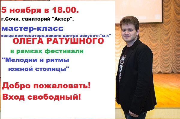 corpo.read_more5-го ноября 2016 г. в 18:00 ждем всех желающих на мастер-класс Олега Ратушного в санатории "Артист" г. Сочи.